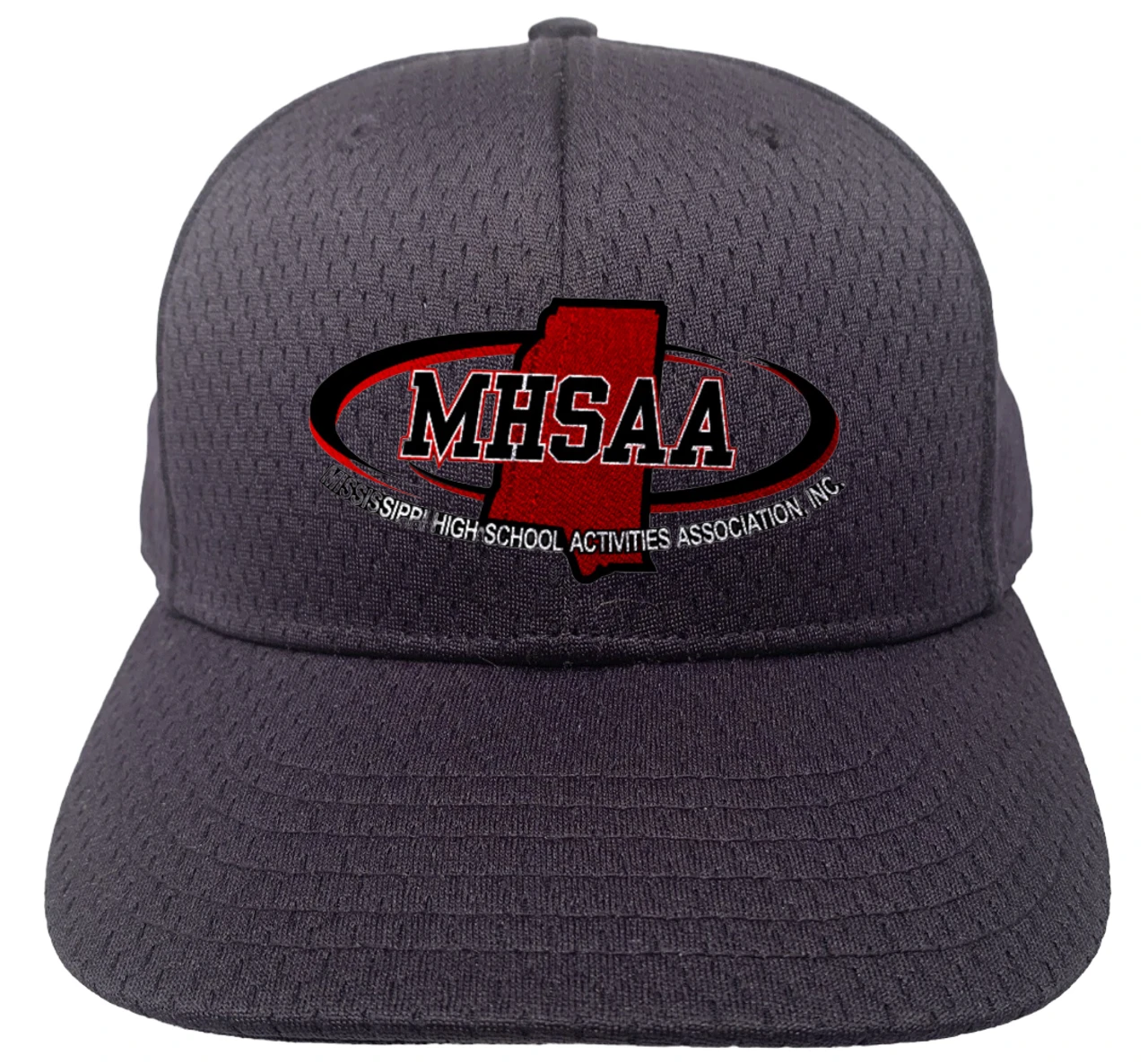 Mississippi MHSAA logo embroidered on the front. Richardson heavyweight, two-layer, ProMesh fabric. ProCrown shape with buckram-fused front panels, matching color crown and undervisor. Black sweatband with pre-curved PE visor. Combo 2″ 4 stitch umpire cap fits under your umpire mask or wear on the bases. Flex-fit cap available in 5 sizes.