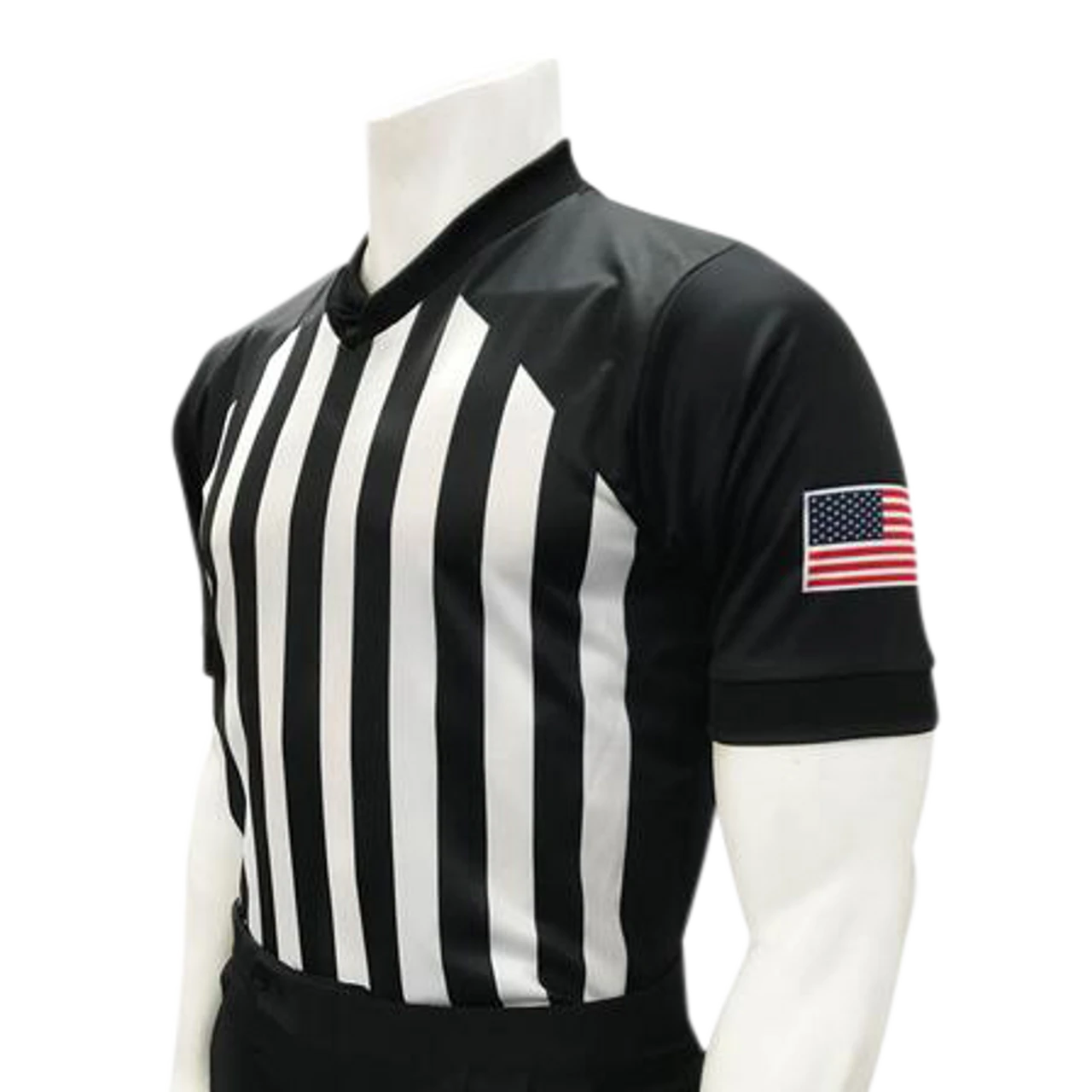 Required for NCAA Men’s basketball referee’s at all levels during the 2019-20 season. Dye sublimated white border US Flag on the left sleeve. Flexible, silky smooth feel of high performance mesh fabric. Lightweight and comfortable. Bright, vibrant colors under the lights. Ready for pre-order now. Estimated ship date is June 24, 2019. Smitty USA has become the leader in manufacturing of dye sublimated shirts for sports officials nationwide. All Smitty Apparel products are designed by one of the top officials in the world, for officials. Made In The USA.
