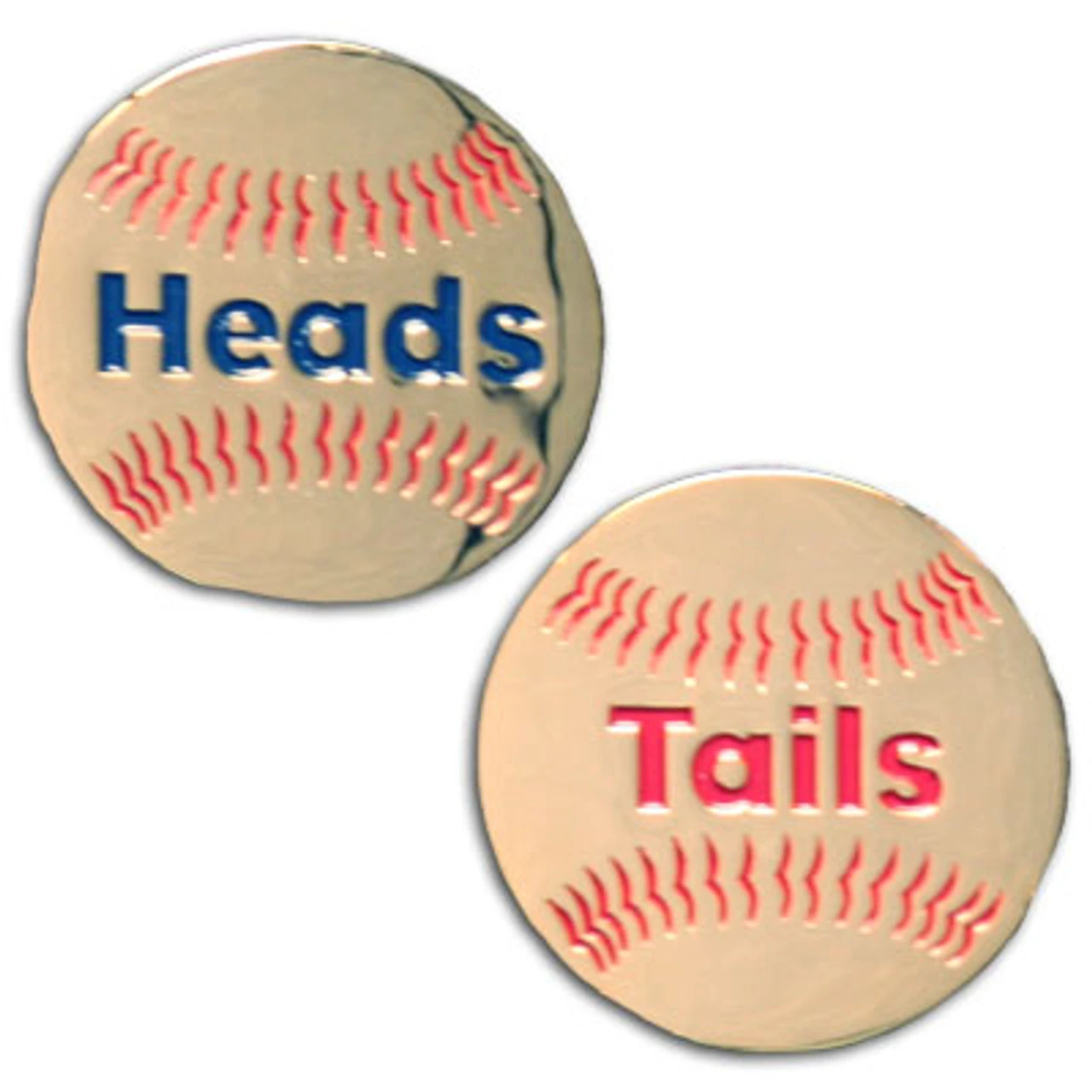 Heads and Tails Umpire flipping coin. Heads and Tails. Softball stitch replica. Plastic storage case included.