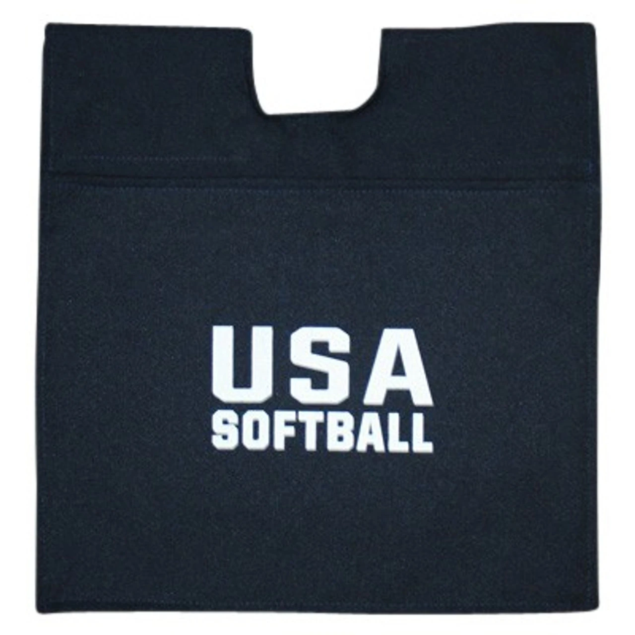 USA Softball Navy Umpire Ball Bag. Official umpire ball bag of USA Softball. Matches approved navy pants. Two inside pockets for indicator and plate brush. Made to accommodate softballs.